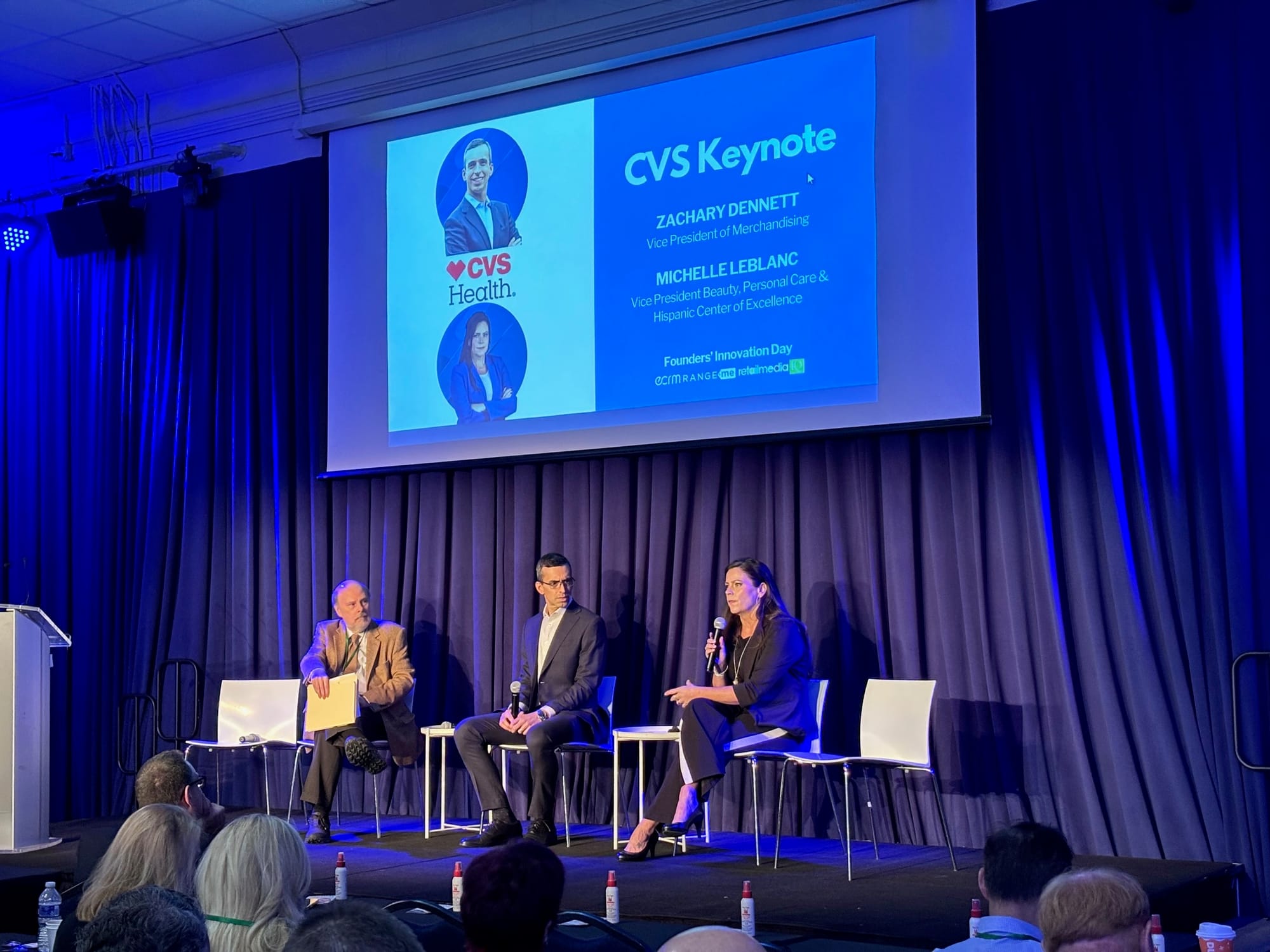 NEW YORK — Founders’ Innovation Day, hosted by ECRM and retailmediaIQ, started with a packed house and a buzz of anticipation as two of the industry’s top retail voices took the stage in Manhattan. Michele Leblanc, vice president of Beauty, Personal Care, and the Hispanic Center of Excellence at CVS, and Zachary Dennett, vice president of Merchandising at CVS Health, delivered the keynote and immediately set the tone with a strong message: success in today’s retail environment depends on clarity, customer focus, and a willingness to leverage data at scale. The event was produced by & .
