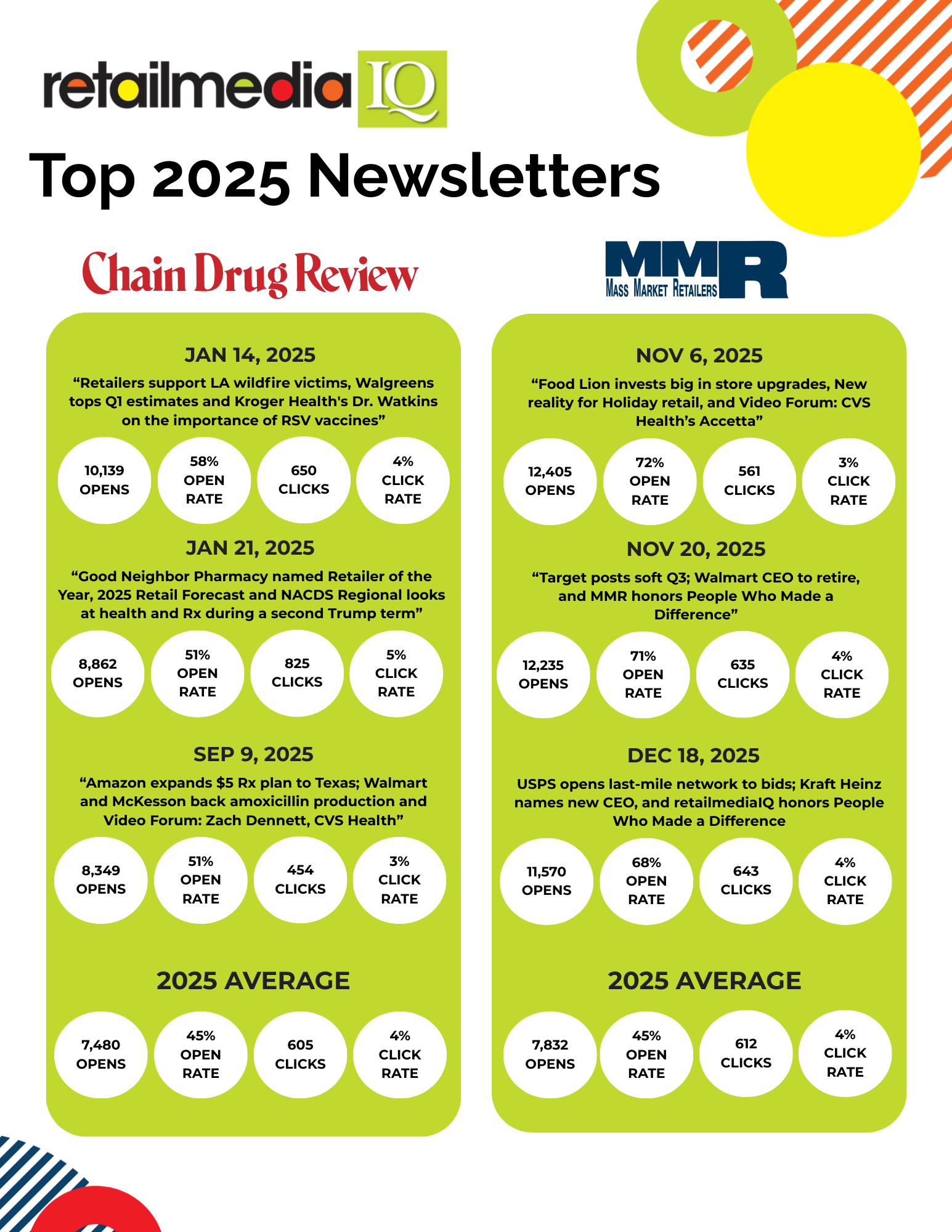 Holiday schedule note: The retailmediaIQ office will be closed from December 24 through January 5. During that period, our teams will pause regular operations. The following editions of the ɫ and Mass Market Retailers newsletters will be published the week of our return.