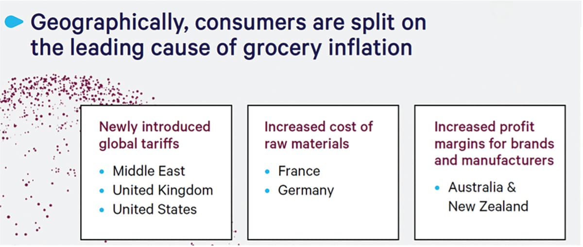 Blue Yonder data from a survey this summer spells it out: 88% of U.S. consumers are worried about grocery inflation, and more of them blame tariffs more than anything else — even though tariffs have little to do with food prices. That’s the narrative gap. And it matters.